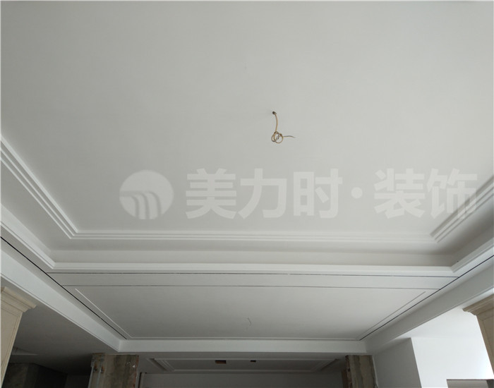 ▲ 该工地的天面有些已经贴好石膏线,并把钉眼处涂上防锈漆,牢牢把握好施工细节,保证工地质量。